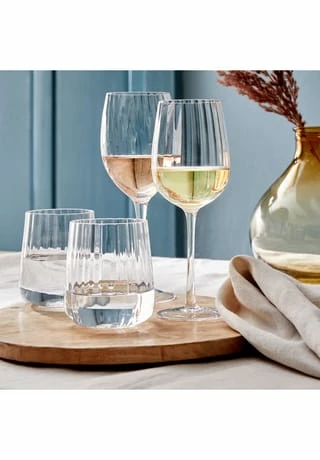 Außergewöhnliche Gläser wie das mundgeblasene Modern Times Rotweinglas 550 ml mit Rillen sind der Hingucker auf dem festlich gedeckten Tisch. Bei dieser neuen Glasserie von Butlers fällt vor allem die außergewöhnlich blumige Form ins Auge, sie wirkt edel und elegant. Was Ihnen beim Tisch decken außerdem auffallen wird: Das Trinkglas lässt sich vielseitig kombinieren und fügt sich harmonisch in die verschiedensten Tischdekos ein. Passend dazu sind ein Wasserglas, ein Weißweinglas und eine Champagnerflöte erhältlich.
