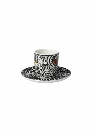 Strahlende Augen – kleine Farbflächen mit Schwarz-Weiß-Kontrast, die wie ein zusammengesetztes Puzzle wirken, ziehen förmlich alle Blicke auf sich und strahlen voll positiver Energie! Man findet die Motive von Billy The Artist auf Vasen, Figuren und auf Accessoires für den täglichen Gebrauch. Farbenfrohe Kunstwerke, die stets aufs Neue begeistern!Bright Eyes I – Espressotasse Spülmaschinengeeignet, doch um die Brillanz der Farben zu schonen ist Spülen per Hand empfehlenswert.Billy the Artist (oder auch BTA) ist ein international bekannter Künstler aus New York. Er arbeitete bereits für viele große Weltmarken wie z.B. Swatch oder Nescafé. Er selbst nennt seine Kunst ‚urban primitive pop’. Gesichter, Augen und Gestalten ergeben puzzle-ähnliche Bilder voller positiver Energie. Seine Gemälde, Wandbilder und Live-Auftritte kann man rund um den Globus antreffen. So konnten sich 30.000 Zuschauer während der Vorstellung seiner Swatch Uhr auf der Piazza San Marco in Venedig live von seinem Ideenreichtum überzeugen. Sein Motto: „ I believe in creating your own reality“.Im Februar 2011 begann mit Romero Britto die Erfolgsgeschichte der Pop Art bei Goebel. Immer wieder begeistert Goebel aktuelle Künstler für den Werkstoff Porzellan. Die Umsetzung der Motive erfolgt ab dem ersten Entwurf in enger Zusammenarbeit mit dem Künstler, um dessen einzigartigen Stil zu erhalten. Durch diese intensive Kooperation werden Objekte aus handwerklicher Perfektion geschaffen.