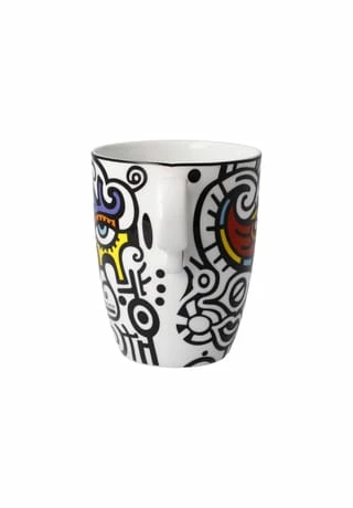 Strahlende Augen – kleine Farbflächen mit Schwarz-Weiß-Kontrast, die wie ein zusammengesetztes Puzzle wirken, ziehen förmlich alle Blicke auf sich und strahlen voll positiver Energie! Man findet die Motive von Billy The Artist auf Vasen, Figuren und auf Accessoires für den täglichen Gebrauch. Farbenfrohe Kunstwerke, die stets aufs Neue begeistern!Bright Eyes I – Künstlertasse Spülmaschinengeeignet, doch um die Brillanz der Farben zu schonen ist Spülen per Hand empfehlenswert.Billy the Artist (oder auch BTA) ist ein international bekannter Künstler aus New York. Er arbeitete bereits für viele große Weltmarken wie z.B. Swatch oder Nescafé. Er selbst nennt seine Kunst ‚urban primitive pop’. Gesichter, Augen und Gestalten ergeben puzzle-ähnliche Bilder voller positiver Energie. Seine Gemälde, Wandbilder und Live-Auftritte kann man rund um den Globus antreffen. So konnten sich 30.000 Zuschauer während der Vorstellung seiner Swatch Uhr auf der Piazza San Marco in Venedig live von seinem Ideenreichtum überzeugen. Sein Motto: „ I believe in creating your own reality“.Im Februar 2011 begann mit Romero Britto die Erfolgsgeschichte der Pop Art bei Goebel. Immer wieder begeistert Goebel aktuelle Künstler für den Werkstoff Porzellan. Die Umsetzung der Motive erfolgt ab dem ersten Entwurf in enger Zusammenarbeit mit dem Künstler, um dessen einzigartigen Stil zu erhalten. Durch diese intensive Kooperation werden Objekte aus handwerklicher Perfektion geschaffen.