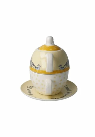 Tea for One – „I Need Vitamin Sea“ Die jeweiligen Sprüche befinden sich auf der Rückseite Schnell und einfach ein Tässchen Tee zubereiten – kein Problem mehr! Denn in der Kanne ist die Tasse gleich mit integriert. Multifunktionales Set bestehend aus Teekanne, Tasse und passender Untertasse.Um die Brillanz der Farben und die Goldauflage zu schonen, ist Spülen per Hand mit mildem Reinigungsmittel empfehlenswert.Vor einigen Jahren fand Barbara Freundlieb, eine gebürtige Rheinländerin, den Weg zur Malerei und Illustration. Nach der Familiengründung in Krefeld begann die promovierte Biologin ihre künstlerische Ausbildung an privaten Kunstakademien. Sie veranstaltet regelmäßig Ausstellungen, illustriert Bücher, Gedichte und bringt alles zu Papier, was ihr im Alltag so begegnet.