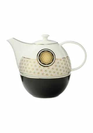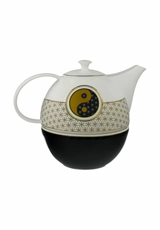 Aus Fine Bone China gearbeitet, präsentiert sich die Teekanne mit Stövchen in edlem Schwarz-Weiß-Gold. Das Stövchen hält den Tee angenehm temperiert und lädt zum Genießen ein!Teekanne mit Stövchen – Yin Yang Schwarz Weiß mit Echtgoldauflage Um die Brillanz der Farben und die Goldauflage zu schonen, ist Spülen per Hand mit mildem Reinigungsmittel empfehlenswert.Angeregt durch Motive aus dem indischen Kulturkreis entstand die Kollektion „Lotus“. Faszinierende Farbkombinationen und zeitgemäße Interpretation alter spiritueller Motive vereinen sich im eleganten „Spirit of Harmony“ und im farbenfrohen „Morning Glory“.“Spirit of Harmony“ – Die sich ergänzenden Gegensätze von Yin und Yang und das Symbol der „Blume des Lebens“ werden in einer hochwertigen Golddekoration in Kontext gesetzt.“Morning Glory“ – Inspiriert durch die farbige Vielfalt der sieben Chakren ist ein farbenfrohes Design entstanden. Farbtöne wie rosé und grün sind spielerisch mit hochwertiger Platinauflage vereint. Im Fokus von Morning Glory stehen die Motive der reinen Lotusblüte und der Silbe Om.Yin und Yang ist eine alte chinesische Philosophie. Es bezeichnet Gegensätze, die eine Gesamtheit und einen Kreislauf bilden. So werden auf schlechte Zeiten zwingend gute Zeiten folgen: Yin und Yang gilt als Symbol der Hoffnung.