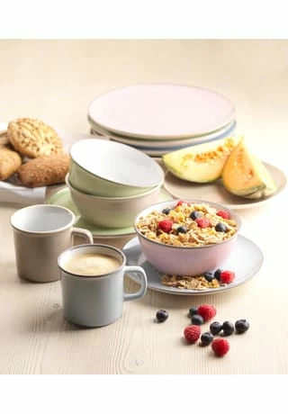 Starten Sie in den Frühling! Mit dem Geschirrset MAILA stellen Sie Ihre Speisen in den Mittelpunkt. Harmonisch können alle vier Farben je nach Stimmung oder Bedarf kombiniert werden und Ihrem Genuss steht somit nichts mehr im Weg. Dieses Set besteht aus: 2 x Kaffeebecher 30 cl Hellblau 2 x Schüssel 15 cm Hellblau 2 x Dessertteller 20,5 cm Hellblau 2 x Kaffeebecher 30 cl Hellgrün 2 x Schüssel 15 cm Hellgrün 2 x Dessertteller 20,5 cm Hellgrün