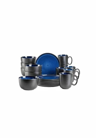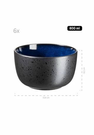 Die unvergleichliche Keramikgeschirr-Serie „Niara“ der österreichischen Traditionsmarke Mäser verbindet auf einzigartige Weise selbstbewusste skandinavische Formen mit zwei unterschiedlichen, aufwändigen Glasurtechniken: Auf den Ober- bzw. Innenseiten der Geschirrteile fließen strahlende Farbschattierungen auf schwarzem Untergrund zu wunderbaren Maserungen zusammen. Die Außen- bzw. Unterseiten hingegen bestechen durch eine Mattglasur in Schwarz, welche mit glänzenden schwarzen Sprenkeln überzogen wurde. Durch die händisch aufgetragenen Farben ist jedes Teil in dieser Kollektion auf allen Seiten einzigartig gemustert. Mit ihrem exquisiten und individuellen Charakter ist die Kollektion „Niara“ ein echter Hingucker auf jedem Esstisch. Gefertigt aus langlebigem, hochwertigem Steinzeug (welches nicht mit dem deutlich brüchigeren Steingut zu verwechseln ist) wird Ihnen dieses Geschirrset lange Freude bereiten. Selbstverständlich ist die gesamte Serie „Niara“ mikrowellen- und spülmaschinengeeignet. Dieses Set wird in einer vielfach auf Bruchsicherheit getesteten Paketversandverpackung aus nachhaltigen Materialien versendet. Bitte beachten Sie: Diese Kollektion wird händisch lasiert, wodurch minimale Unebenheiten der Glasur, kleine Einschlüsse und leichte Farbabweichungen auftreten können. Zur besseren objektiven Vergleichbarkeit gehen unsere Füllmengenangaben von einer randvollen Befüllung aus. Dieses Geschirrservice besteht aus: 6 großen Kaffeetassen (465 ml Füllmenge) 6 Müslischalen (Ø 13,8 cm, 800 ml) 6 Frühstückstellern (Ø 21,5 cm)