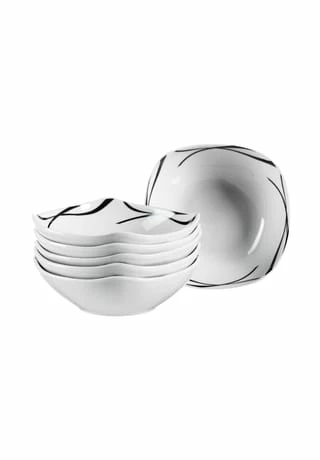 Das formschöne 6-teilige Müslischalenset »Oslo« von MÄSER ist eine elegante Wahl für den apart gedeckten Tisch. Mit seinem zeitlosen Dekor passt es zu jedem Anlass und gestaltet auch alltägliche Mahlzeiten stilvoll. Dabei lässt es sich mit entsprechenden Dekorationen immer wieder neu inszenieren. Jedes Teil aus dem Service ist aus hochwertigem Porzellan in mikrowellen- und spülmaschinengeeigneter Qualität gefertigt. Zu jedem Anlass stilvoll speisen: mit dem formschönen Tafelservice »Oslo« aus dem Hause MÄSER. Dieses Set besteht aus: 6 x Müslischale à 14 cm Die perfekte Ergänzung zu Ihrem Service der Serie Oslo.