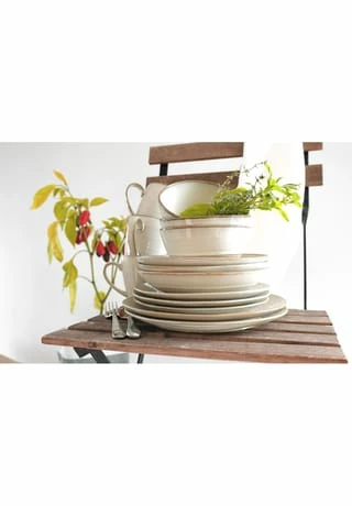 Moderner Brit-Chic für Ihren Esstisch – dieses Versprechen löst die Serie NOTTINGHAM der österreichischen Traditionsmarke MÄSER perfekt ein: Aufwändig gefertigt aus hochwertigem Steinzeug, designed um eine aufregende Brücke zwischen Retro- und modernem Look zu schlagen. Neben seinem grundlegend unvergleichlichen Charakter glänzt dieses Frühstücksgeschirr Service nicht zuletzt auch dadurch, dass kein Teil exakt wie das andere aussieht. Eine händisch aufgetragene reaktive Glasur und organische Formen anstelle von perfekten Rundungen sind hierfür ausschlaggebend. Mit diesem Service Set aus der Serie NOTTINGHAM verleihen Sie Ihrem Esstisch nicht nur zum festlichen Brunch, sondern an 7 Tagen in der Woche die perfekte Eleganz. Dieses 8-teilige Speiseservice besteht aus: • 4 x Speiseteller flach à Ø 26 cm • 4 x Suppenteller tief à Ø 21 cm (600 ml Füllvolumen) Alle Teile sind dauerhaft spülmaschinen- und mikrowellengeeignet, und dadurch äußerst pflegeleicht.